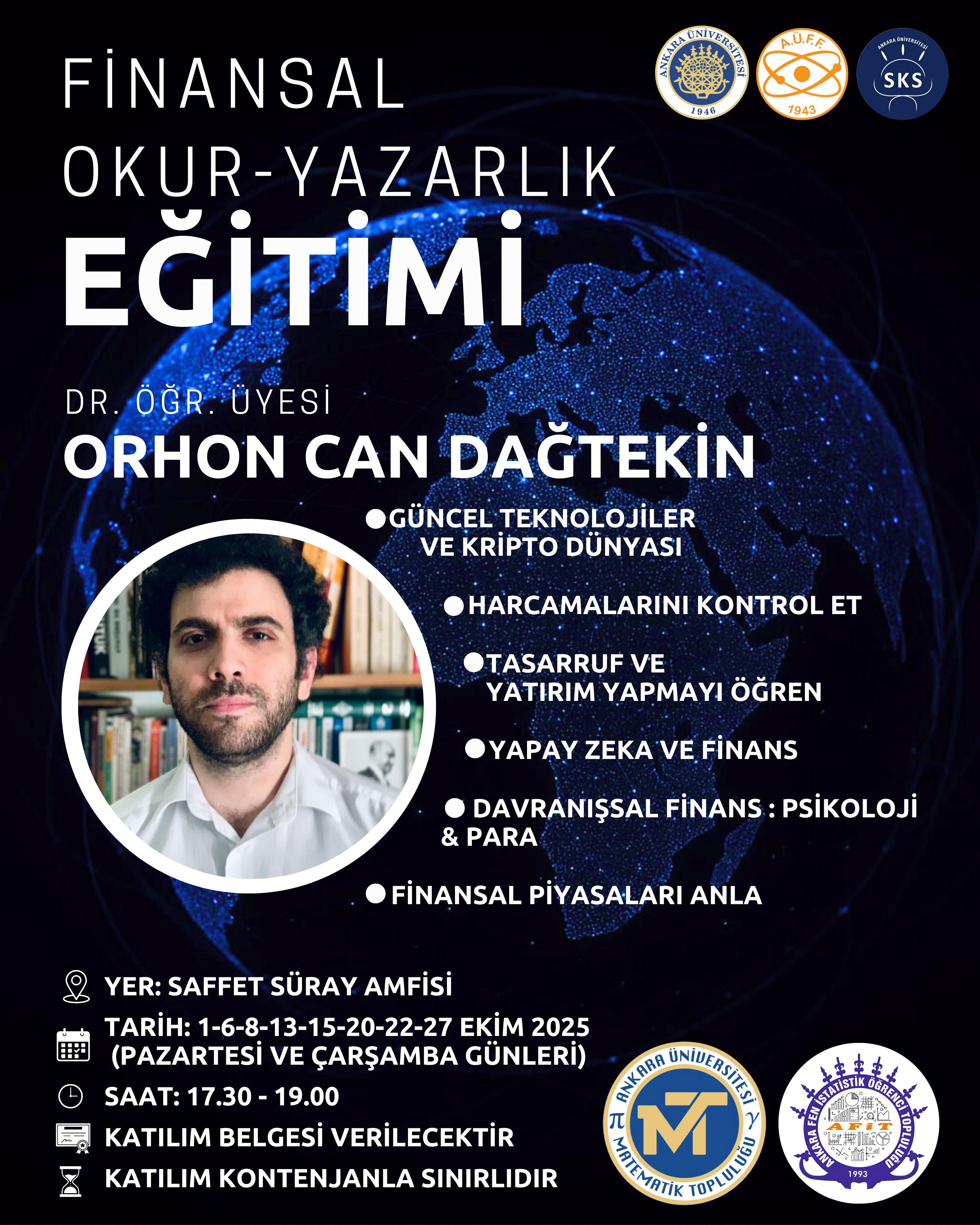 Paranı yönetmek, yatırım yapmayı öğrenmek, hatta kripto dünyasına daha bilinçli bakmak ister misin?  Ankara Üniversitesi Matematik Topluluğu ve Ankara Üniversitesi Fen İstatistik Topluluğu olarak tam da bunun için güzel bir eğitim hazırladık!